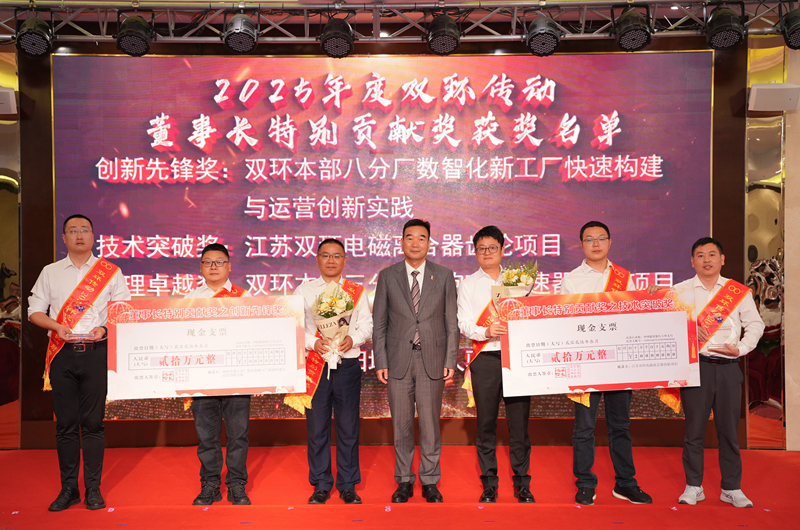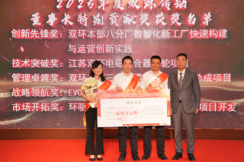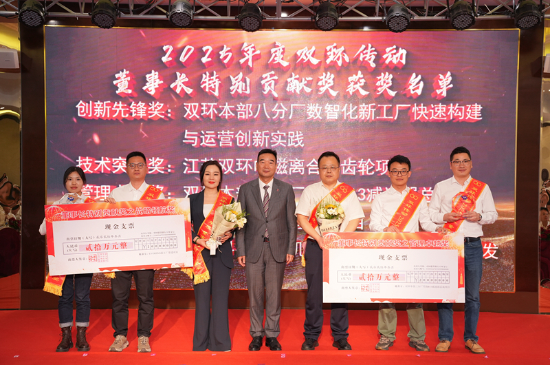年會現場對2025年度為公司發展作出卓越貢獻的項目團隊予以表彰,授予其董事長特別貢獻獎。該獎項由董事長吳長鴻特別設立,是集團面向市場開拓、生產運營、技術革新、管理創新四大領域杰出貢獻者的最高榮譽,是“榮譽規格最高、獎勵力度最大”的標桿定位,激勵全體雙環人勇毅前行、銳意進取,在實現個人價值與推動企業發展的征程中不斷突破自我。