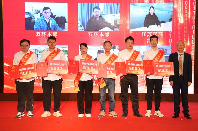 會上還同步頒發了集團年度二十大人物、優秀基層干部、年度優秀創新改善案例、企業文化建設先進單位、分廠紅藍旗等系列獎項,通過樹立先進典型、弘揚榜樣力量,進一步凝聚全員斗志,鼓舞全體雙環人在新的一年里同心同德、奮勇爭先,攀登事業新高峰。